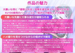 [旧作] [241030][新規コンテンツ研究会] クールなツンデレ彼女の寝取られ報告!1回きりの寝取らせのはずが…あなたの大嫌いなヤリチンの先輩にしっかりハマってM堕ち完全オナホ化! [1380M] [RJ01284550] |